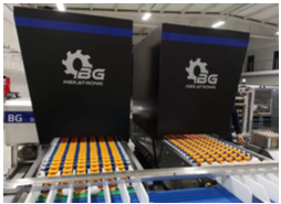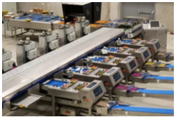 في النظام المزود بـ 5 ماكينات تعبئة أوتوماتيكية متصلة، يتم توجيه أقل كمية، بحد أقصى 2 مجموعات فرز مختلفة إلى صواني التجميع اليدوية للتعبئة اليدوية.