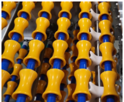 بكرات نقل البيض المستخدمة في Dx600 مصنوعة من مادة مضادة للبكتيريا. وبهذه الطريقة يسهل تنظيفها بالإضافة إلى المرونة والمتانة المطلوبة.