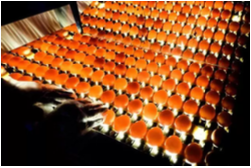 يستخدم Dx600 غرفة مظلمة مع إضاءة سفلية للتعرف بسهولة على البيض المتشقق على ناقل البيض.