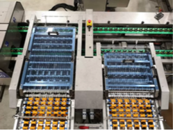 تحتوي Dx600 على صفين من سلاسل نقل البيض مع التحكم في السرعة والتسارع. وبفضل عربات نقل البيض المصممة خصيصًا لنقل البيض، يتم نقل حتى البيض الأكثر حساسية دون أن ينكسر لأنه لا يتعرض لأي قوة إمساك وعصر.